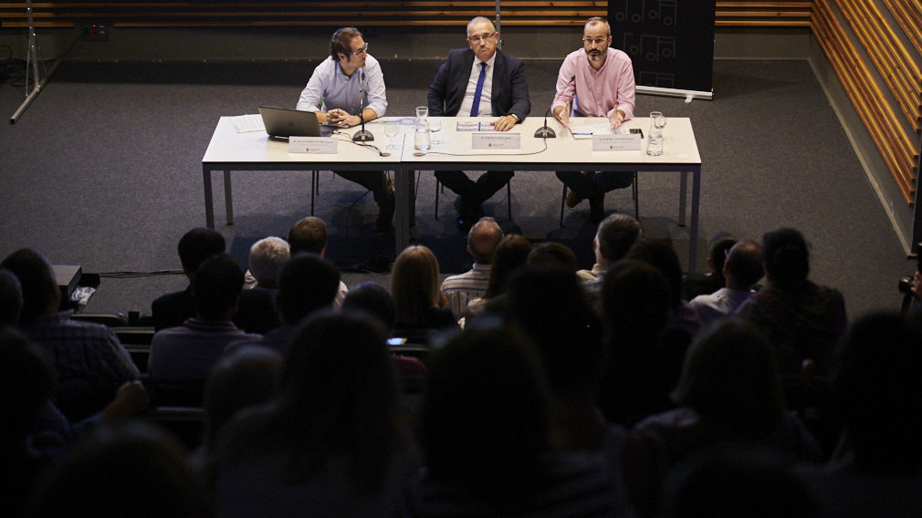 Este miércoles, el alcalde de Pamplona, Enrique Maya; el concejal delegado de Proyectos Estratégicos, Movilidad y Sostenibilidad, Fermín Alonso, y el director de Proyectos y Obras, Movilidad y Sostenibilidad, Alejandro Astibia, han participado en una reunión abierta a la ciudadanía en la Escuela de Música Joaquín Maya para explicar las actuaciones que se van a llevar a cabo.
