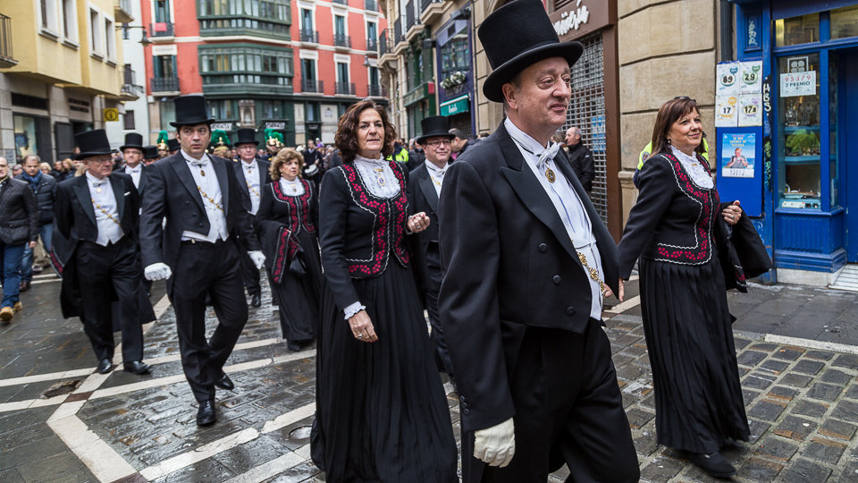 Desde allí se han dirigido a la plaza Consistorial para unirse a la comitiva que participa en la procesión en honor al santo, atravesando la plaza de la Paz, Yanguas y Miranda, García Ximénez y Tudela, para seguir por la plaza del Vínculo, paseo Sarasate, calles Comedias y Zapatería.