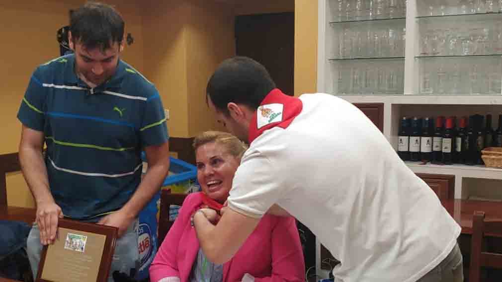 Carlos Barrapondo, vocal de la peña, ha argumentado que la presidenta de la fundación, Ana Artazcoz "es la viva imagen de la resiliencia por su trabajo y la actitud positiva de poder con todo a pesar de las dificultades de la vida".