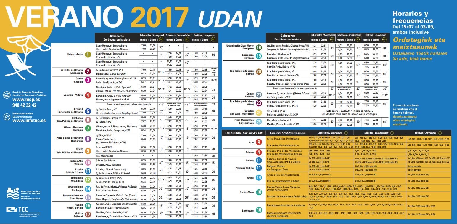 Desde la Mancomunidad de la Comarca de Pamplona señalan que la información detallada del horario de verano ha sido colocada en los postes y marquesinas de la red, aunque también destacan que puede consultarse en la web del Transporte Urbano Comarcal.