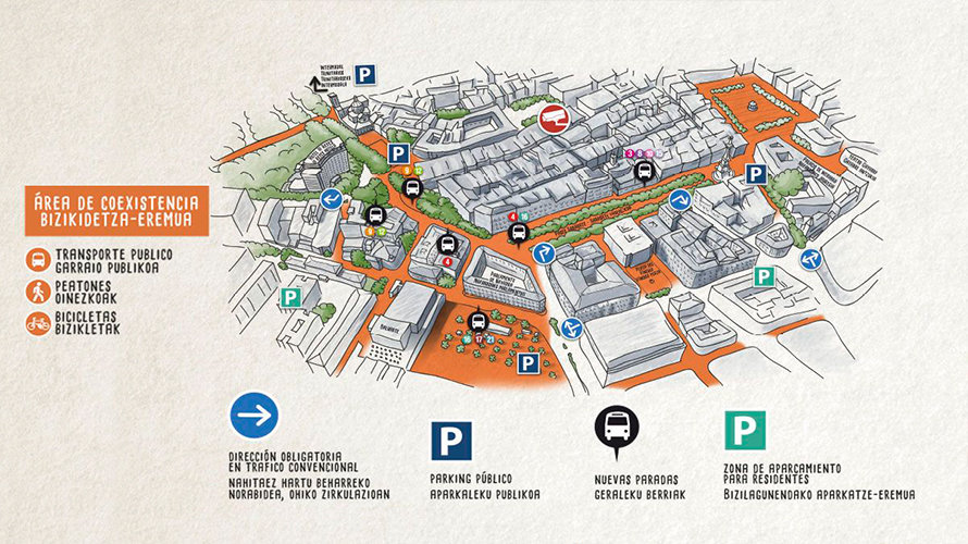 Además, al llegar a la plaza de la Paz, únicamente podrán circular en sentido al paseo Sarasate los residentes en los sectores 1 y 2 y los vehículos de servicios, pero ninguno de ellos podrán continuar por el Parlamento de Navarra, ya que se restringe a transporte urbano y bicicletas.