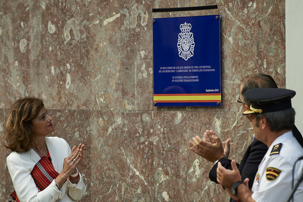 Durante el homenaje, se ha descubierto una placa, colocada en la entrada de la Jefatura Superior de Policía de Navarra, que recuerda a estos agentes del Cuerpo Nacional de Policía.