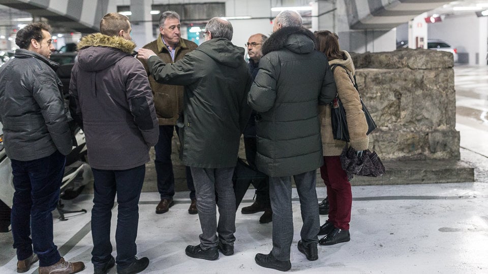Después del aparcamiento subterráneo, los miembros de la Gerencia de Urbanismo han visitado los restos arqueológicos que han aparecido en las obras que se están llevando a cabo en un edificio de la Plaza del Castillo. Todo parece indicar que se trata de una sección de torreón y de un lienzo de muralla del antiguo castillo del rey Luis Hutín construido en 1305 y, por lo tanto, el castillo más antiguo del que se tiene referencia histórica en la ciudad.
