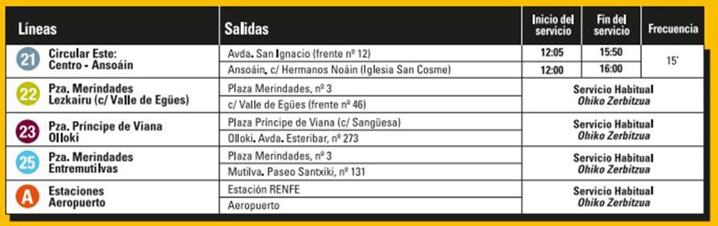 La huelga, convocada por los sindicatos ELA, LAB y ATTU, afectará a todas las líneas de villavesas salvo los microbuses de la número 14 que conecta el Ayuntamiento y la Rochapea, la 22 entre Merindades y Lezkairu, la 23 entre Príncipe de Viana y Olloki, la 25 de Merindades a Entremutilvas y el autobús al aeropuerto.
