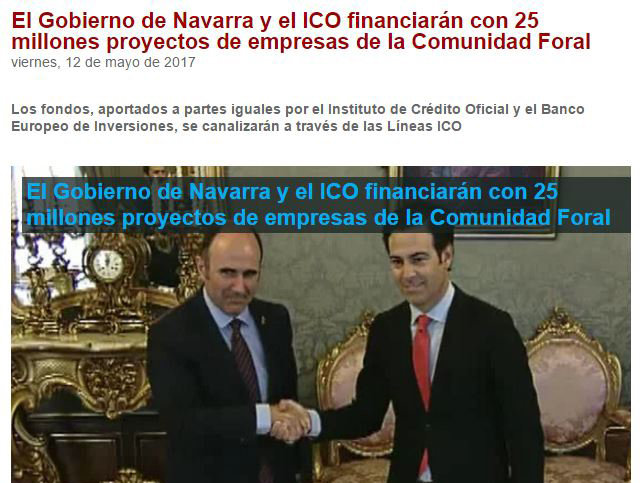 Así lo han señalado en el titular de una nota de prensa, en la que ha 'escondido' en otros párrafos el verdadero origen de estos fondos: el Ejecutivo navarro no inyectará ni un solo euro y el dinero procederá, a partes iguales, del ICO y del Banco Europeo de Inversiones (BEI).