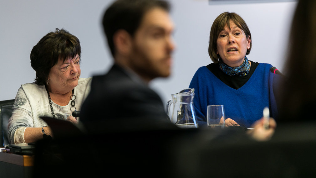 Comparecencia de Uxue Barkos y Maria José Beaumont en el Parlamento para explicar las actuaciones en los temas de Palacio de Rozalejo. IÑIGO ALZUGARAY