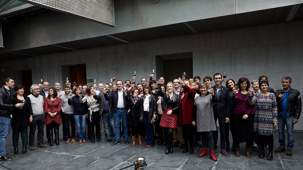 En una de las estancias diáfanas del edificio, Unai Hualde ha agradecido la presencia del cerca de un centenar de personas congregadas, que han respondido a su llamamiento "para confraternizar y estar de forma más distendida" quienes habitualmente trabajan en el mismo espacio en distintas facetas.
