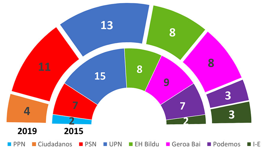 El Partido Popular se quedaría fuera de la cámara al no llegar al mínimo necesario (3%) de los votos emitidos y perdería sus dos escaños en el Parlamento de Navarra.