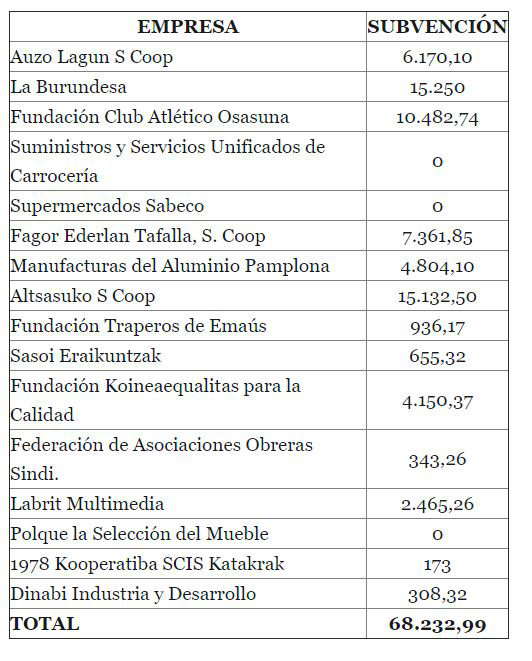 El Gobierno de Navarra, a través de una resolución del director gerente del Instituto Navarro del Euskera, ha aprobado este miércoles pagar las ayudas concedidas a diversas empresas privadas por fomentar el euskera. Entre ellas se encuentra Osasuna, que recibirá 10.482 euros por inducir a sus trabajadores a que aprendan el euskera.