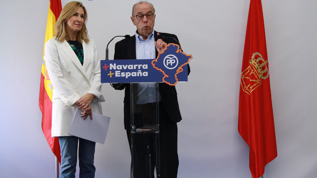 La presidenta del PPN, Ana Beltrán, y el senador 'popular' José Cruz Pérez Lapazarán han ofrecido este viernes una rueda de prensa en la que han considerado de "extrema gravedad" que el Gobierno foral "esté todavía deshojando la margarita sobre las dimensiones de la segunda fase del Canal de Navarra".