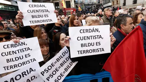 La concentración ha sido convocada por UPN para mostrar el rechazo de la sociedad navarra a la moción de censura a Cristina Ibarrola y ha reflejado el sentir de miles de pamploneses que, indignados por la falta de escrúpulos del PSOE, se han manifestado contra la unión socialista abertzale.