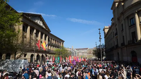 Durante la concentración, se ha leído un comunicado conjunto en castellano y euskera, en el que han acusado al Ejecutivo foral de haber “permitido el debilitamiento” de sectores esenciales como la sanidad, la educación, el bienestar social o la cultura.