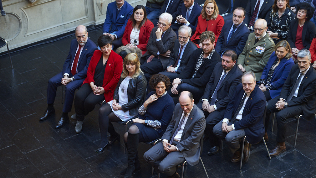 Barkos ha presidido el acto institucional de celebración del Día de la Policía Foral, que ha tenido lugar este sábado en el claustro isabelino del Instituto Navarro de Administración Pública. Un acto que ha contado además con la presencia de la presidenta del Parlamento de Navarra, Ainhoa Aznárez; la consejera de Presidencia, Función Pública, Justicia e Interior, María José Beaumont; el director general de Interior, Agustín Gastaminza, y el jefe de la Policía Foral, Torcuato Muñoz. Durante el acto, se ha reconocido la labor de agentes, personas y entidades colaboradoras, con la entrega de 37 distinciones.