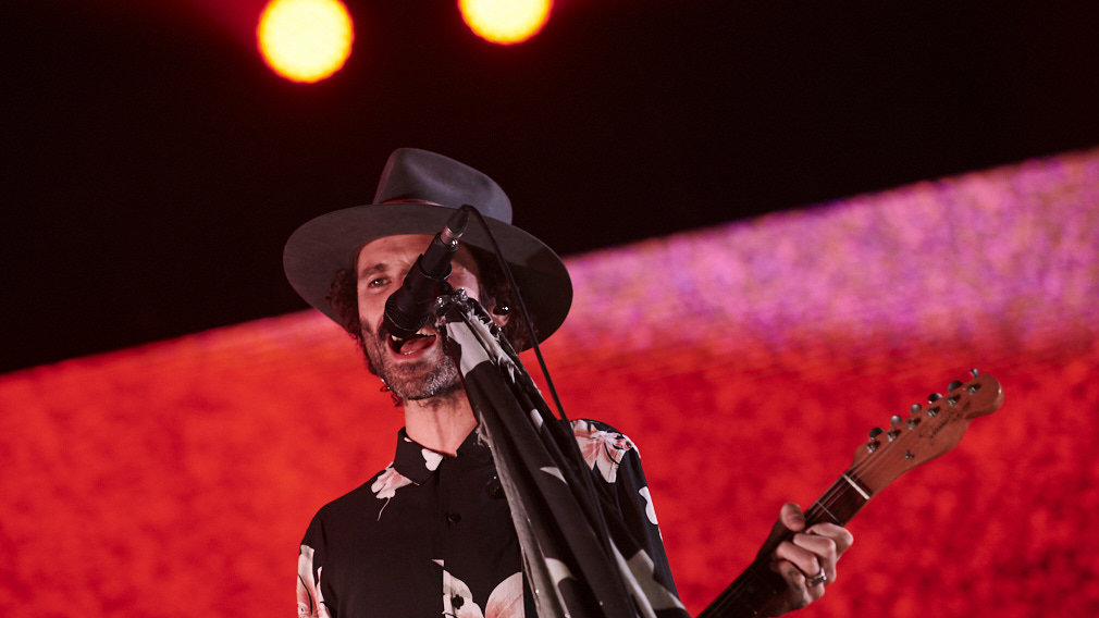 Un vaporoso fondo amarillo ha acompañado a Leiva mientras ha cantado En el espacio, una balada que, con un solo de guitarra como transición, ha hilado con Nuclear, el tema que da nombre a su último trabajo discográfico.