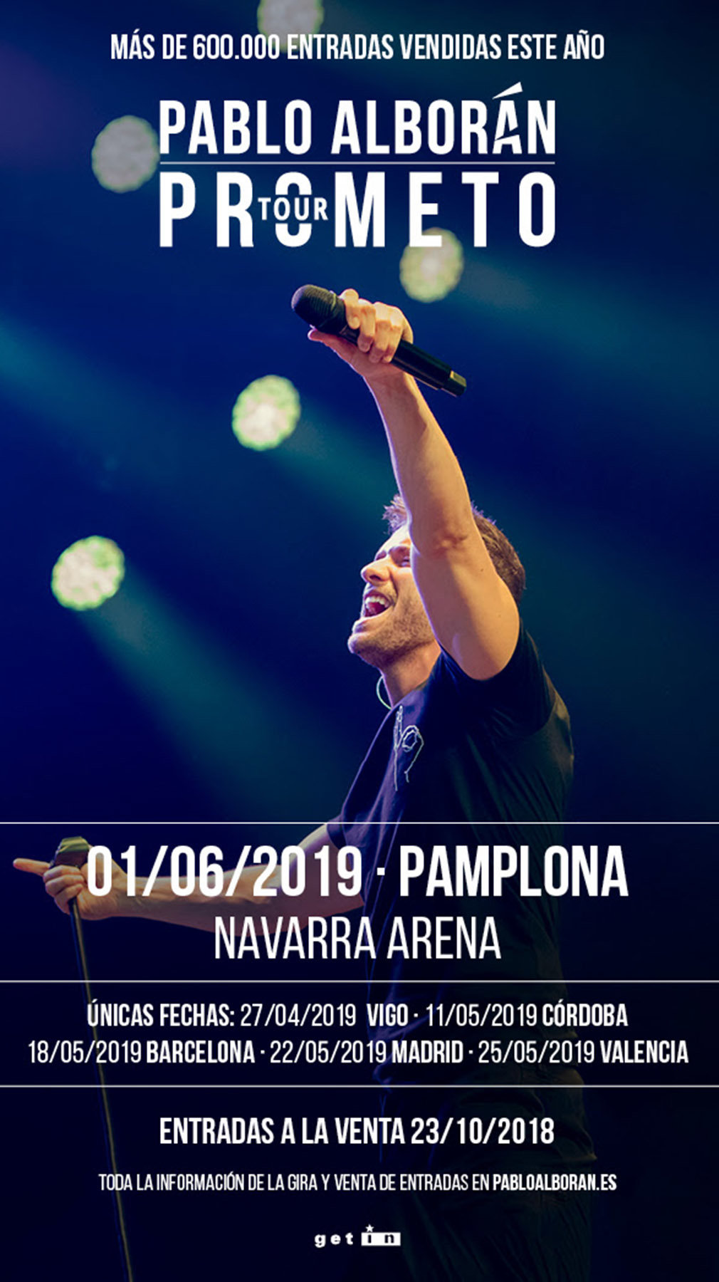 Aunque la fecha más especial, la del último concierto del ‘Tour Prometo 2019’, tendrá lugar en Pamplona, en el nuevo Navarra Arena, el día 1 de junio de 2019.
