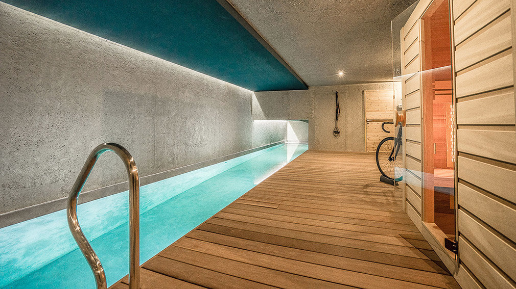 Se trata de una construcción de gusto moderno y delicado con capacidad para 11 personas en 4 dormitorios, cada uno con su baño privado. Los huéspedes de esta casa podrán disfrutar de una sauna, una piscina cubierta en medio de la montaña e incluso una sala de fiestas dentro del hogar.
