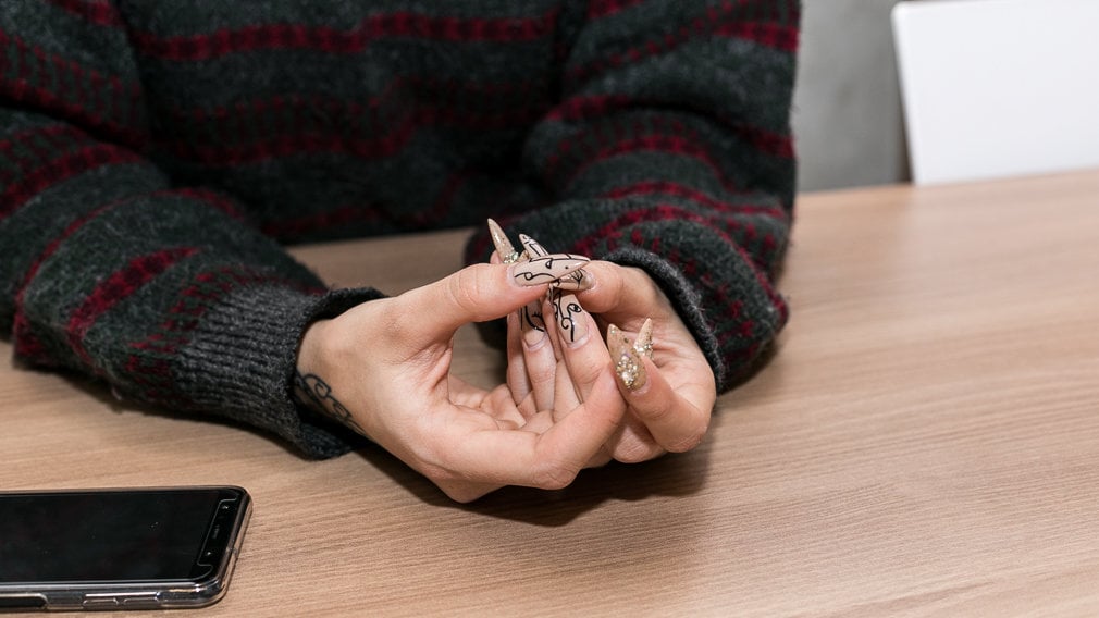 Un detalle de las llamativas uñas que la joven Natalia Lacunza se ha puesto tras su paso por OT. IÑIGO ALZUGARAY