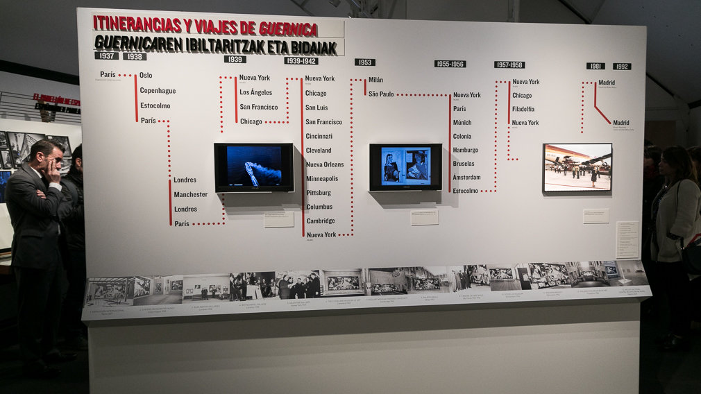 La idea del ejecutivo era llevar su simbolismo antifascista hasta la Exposición Internacional de París y, sin embargo, ese sólo fue el principio de un largo viaje físico que le llevó de continente en continente durante décadas hasta que recalar en su actual emplazamiento en el Museo Reina Sofía, ya en 1992. Concluido es viaje en el espacio queda, muy lejos de terminar, al viaje simbólico ya que hoy sigue el cuadro siendo una alegoría universal sobre la guerra, la libertad, el totalitarismo y la solidaridad.