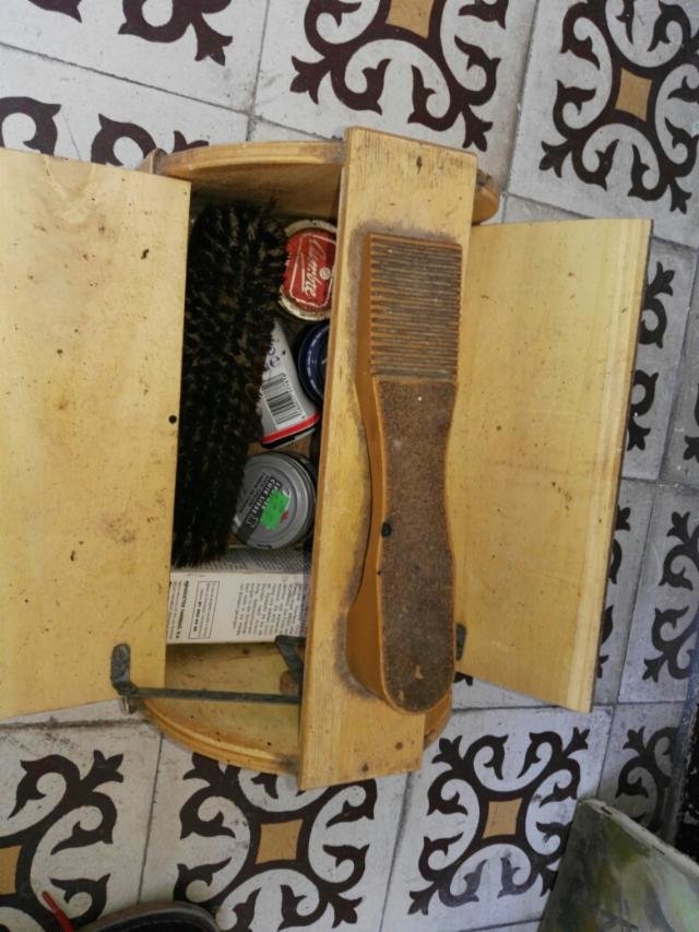 Desde Tudela se vende también un "limpiador de sabatos", nombre que reza el título del anuncio y que, en realidad, hace mención a un limpiador de zapatos propiamente dicho. Tal y como se muestra en la imagen, incluye los propios líquidos típicos para llevar a cabo esta tarea. Aunque no dice si el betún viene incluido, pide 55 euros por el objeto en cuestión. (Se puede ver el limpiador en la sexta imagen de la imagen adjunta a esta información).