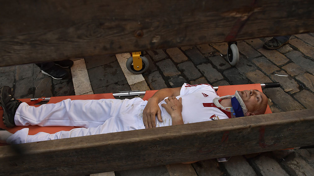 El último herido se trata de un pamplonés de 19 años, identificado como J.A.P. quien ha sufrido un traumatismo, de pronóstico menos grave, en el tramo de la Estafeta, según informa el Gobierno Foral.