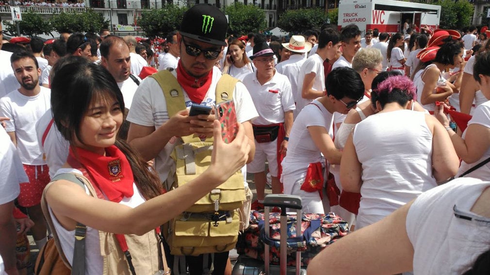 Ha sido el caso de una joven pareja de Taiwan que se ha presentado en la plaza del Castillo con dos enormes maletas en las que, a buen seguro, cabían más de una media y un calcetín.