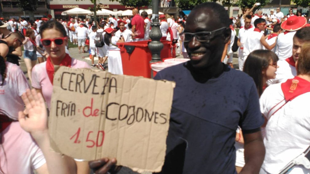 Pero no ha vendido una cerveza cualquiera. Dentro de un gran cubo con más de 10 kilos de hielo, el comerciante portaba más de cincuenta lazas de cerveza "fría de cojones", tal y como promocionaba en un divertido cartel hecho a mano que ha llamado la atención de muchos de los sedientos pamploneses y visitantes deseosos de fiesta.