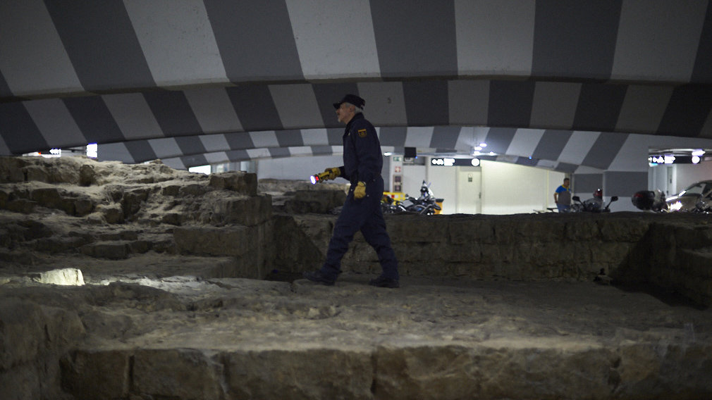 Los agentes de la Policía Nacional inspeccionan cada día de las fiestas un aparcamiento público de la capital navarra de manera aleatoria.