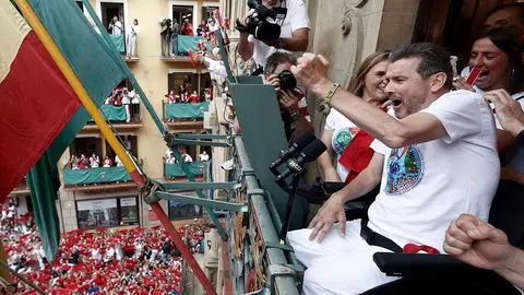 Juan Carlos Unzué se ha hecho esperar. Todas las miradas de la prensa, radio y televisión estaban dirigidas al ascensor que conduce a la segunda planta del consistorio, a la espera del Chupinazo de las fiestas de San Fermín.