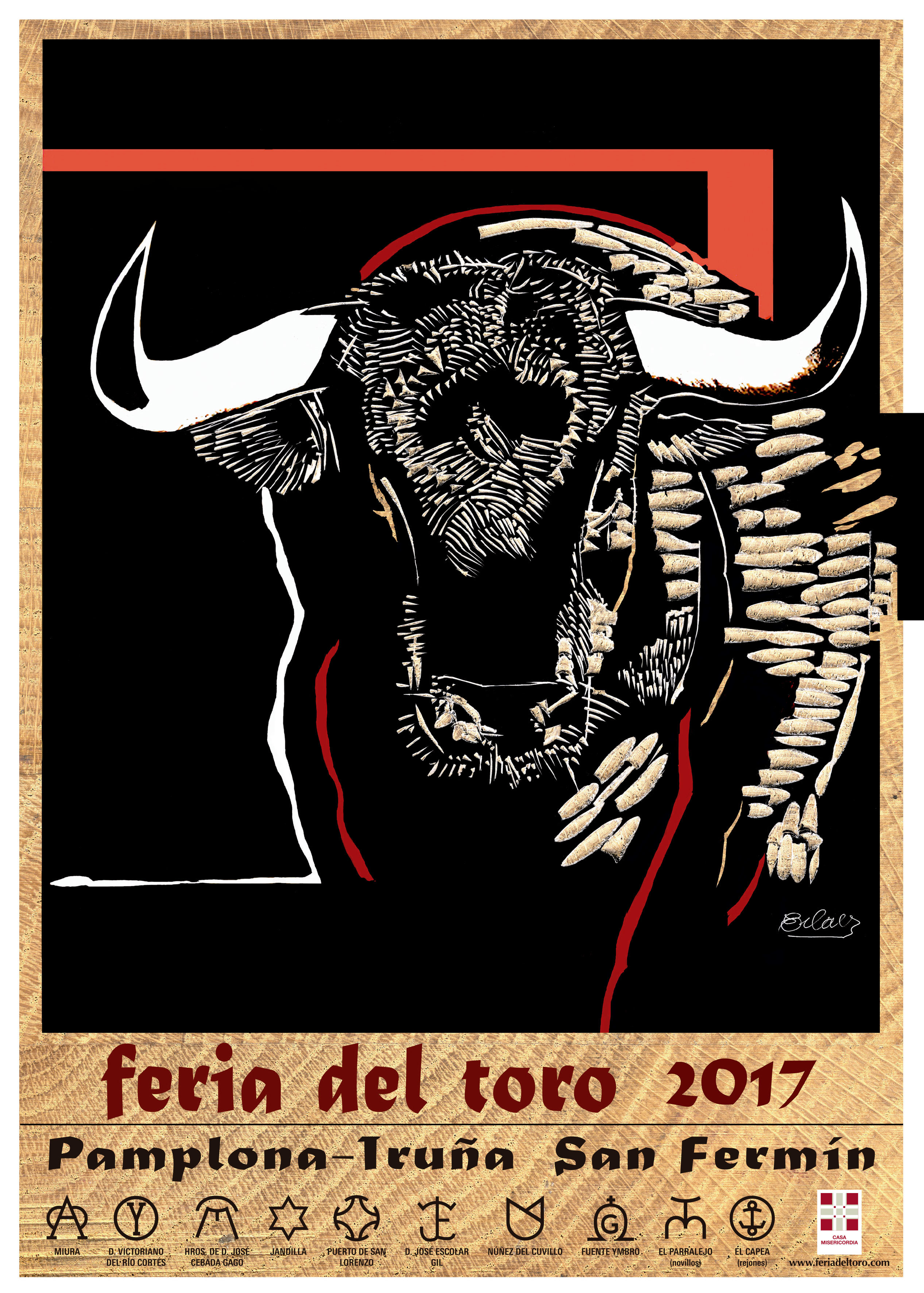 El cartel de la Feria del Toro de Pamplona 2017 ha explicado su autor, que ha considerado un "honor" haber vuelto a recibir el encargo de la Casa Misericordia 60 años después de su primera responsabilidad, ha destacado la mirada del toro. "No está paseando, está mirándonos y esa mirada es lo que he intentado captar", ha asegurado Eslava. ![]()