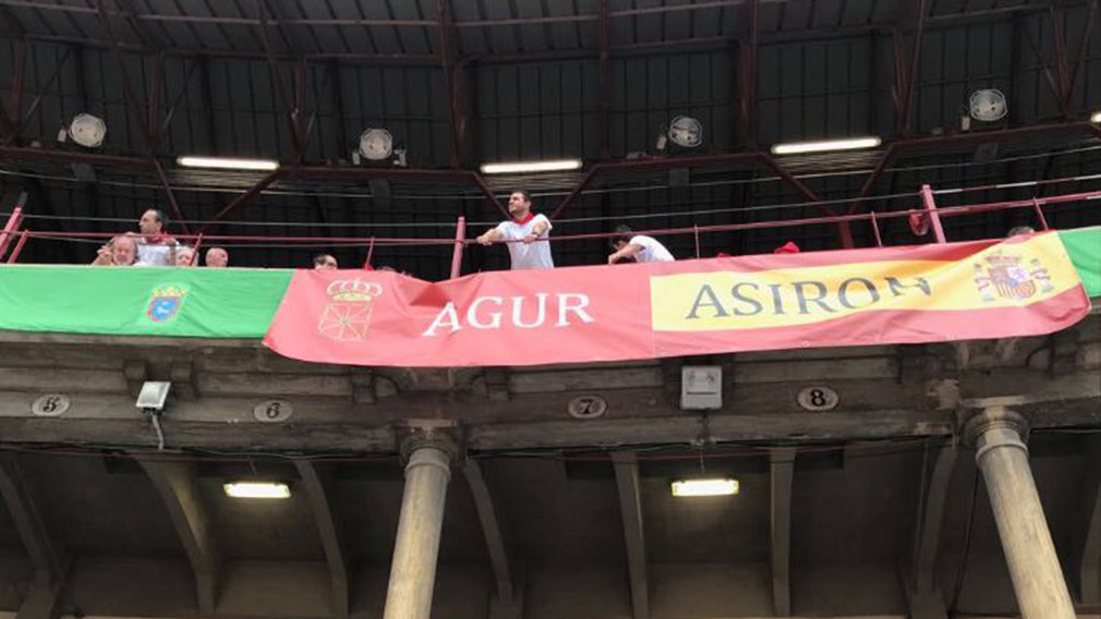 Por ello, en una de las andanadas de sombra se ha colgado el cartel de "Agur Asirón". Además, desde la zona de sombra se ha cantado el "¡Viva España!" mientras la parte de sol asistía atónita a esta expresión de la realidad social de Pamplona.