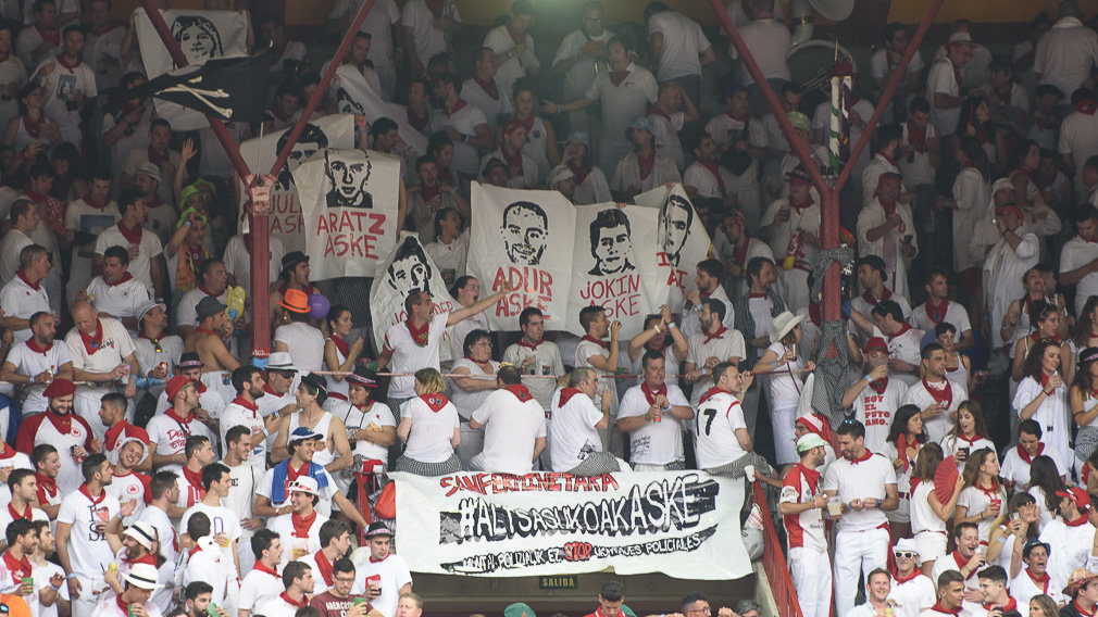 Por su parte, en el tendido del 7 donde se ubican las peñas, se ha desplegado una gran pancarta en favor de los asesinos de ETA, además de unas cuantas esteladas catalanas, que han estado acompañadas por gritos de exaltación hacia los terroristas de ETA y carteles con rostros de los agresores de Alsasua.