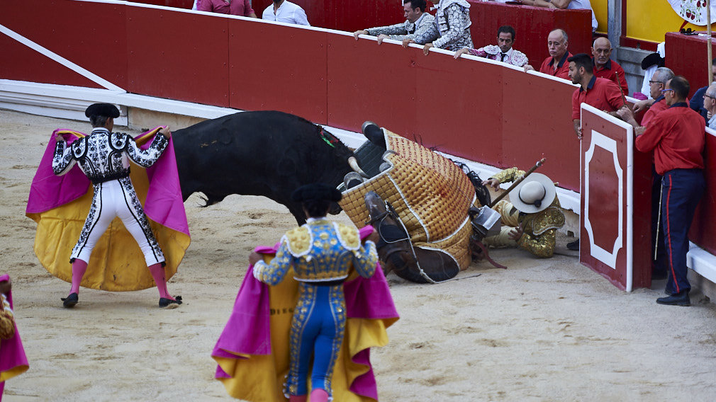 Tropezón en el arranque de la feria de Sanfermines: dos picadores y un alguacilillo terminan por los suelos