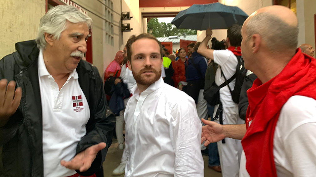 Ante la gran cantidad de lluvia anegada, los responsables de la Meca y el presidente del festejo, que este lunes recae en el concejal del PSN Xabier Sagardoy, han esperado hasta último momento para reunirse en la capilla con los tres toreros, sus cuadrillas y los responsables de la Brigada de Juego y Espectáculos de la Policía Foral.
