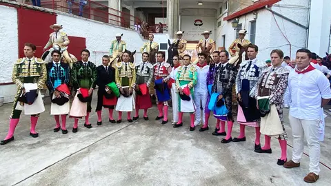 Al salir Ferrera de la capilla de la plaza ha ido uno por uno saludando a todos los trabajadores de la plaza de toros que se encontraban ahí presentes. Además, se ha sacado una foto grupal, tanto con las otras dos cuadrillas y los dos sobresalientes, como con los picadores y encargados de las mulillas.