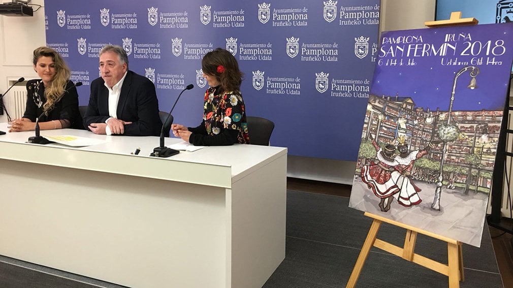 El alcalde de Pamplona, Joseba Asirón, junto a la concejala de Cultura y Educación, Maider Beloki, han sido los encargados de dar a conocer la ilustración ganadora y los resultados de la votación, en la que se ha superado la participación de hace un año con menos días para votar.