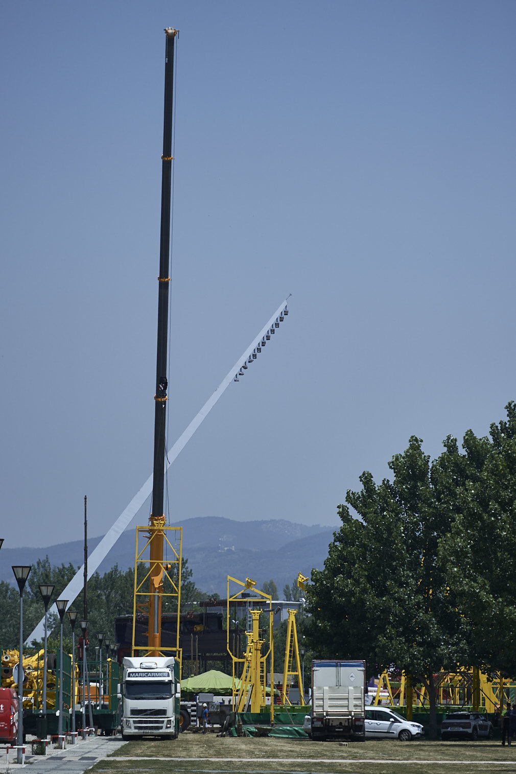 La novedosa atracción se trata de un volador panorámico que sube 30 metros de altura, una especie de columpio volador, que ya ha comenzado a instalarse en la capital navarra.