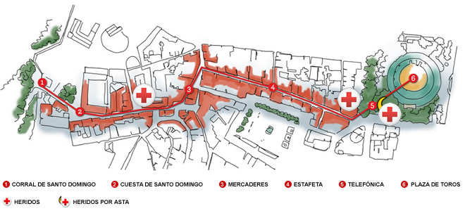 También ha sido trasladado al hospital, desde el tramo de Santo Domingo, un corredor con una contusión en la pierna. Un tercer evacuado, desde el tramo de Telefónica, presenta un golpe en el brazo izquierdo. Asimismo, en la enfermería de la Plaza de Toros han sido atendidas dos personas, que no se trasladan al centro hospitalario, una con una herida en el brazo izquierdo y otra con una contusión con deformidad en el brazo derecho.