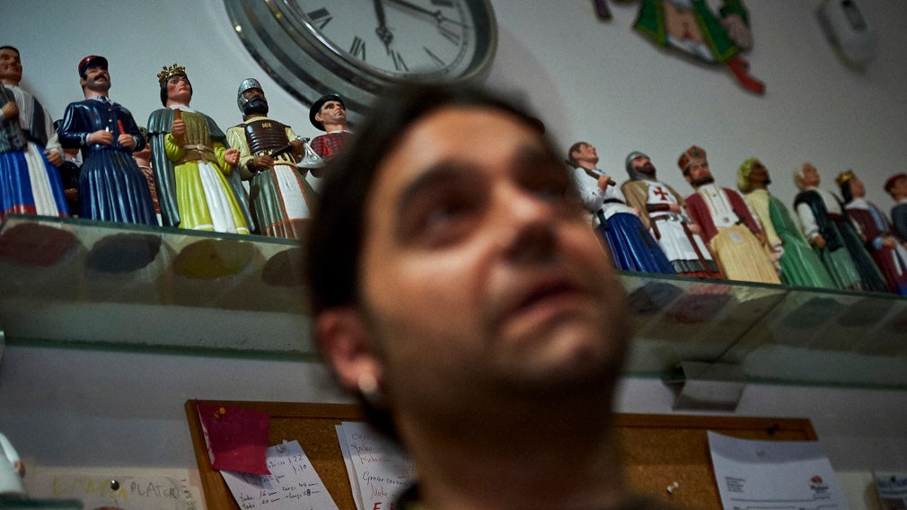 "Soy bailador de los gigantes de Falces y me han apasionado siempre. Mis hijos tenían unos gigantes de juguete y se sentaban en frente de un mural que tienen en su habitación en el que salen los gigantes de Falces bailando y un día pensando le dije a mi mujer que teníamos que hacer los gigantes de Falces de goma, pero por capricho y porque no existían. Nuestra sorpresa fue que cuando los sacamos me empezaron a llamar de muchos ayuntamientos de la Ribera para que les hiciese en goma los gigantes del pueblo y así fue como se nos empezó a ir de las manos", cuenta Platero.