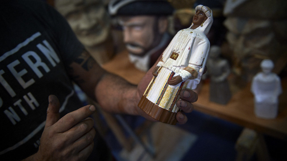 "Cuando empecé si que los detalles los pintaba yo a mano uno a uno. Me acuerdo perfectamente de todas las parejas que tengo y del orden en el que las he hecho porque aunque la gente no lo ve cada pueblo ha sido un reto para mí porque tienes que hacer todas las formas y las inversiones, porque cada pareja cuesta 10.000 euros hasta que llegas a la pieza de base", explica el escultor.