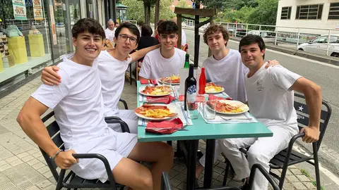 Han compartido años de trabajo, muchas horas en talleres y oficinas, y ahora también han vivido juntos el inicio de los Sanfermines. Cinco veteranos que han forjado una amistad a prueba de distancias se han reunido este 6 de julio en una terraza de Pamplona para almorzar y celebrar, por primera vez, el Chupinazo como grupo.