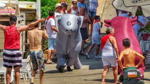 Se llama Aguaclaro, es castaño y pesa 530 kilos. Son las 20.30 horas de la tarde en Pamplona y el ambiente ahora mismo es ensordecedor en la plaza de toros, con las 16 charangas sonando de forma simultánea mientras el último toro de la tarde salta al ruedo.
