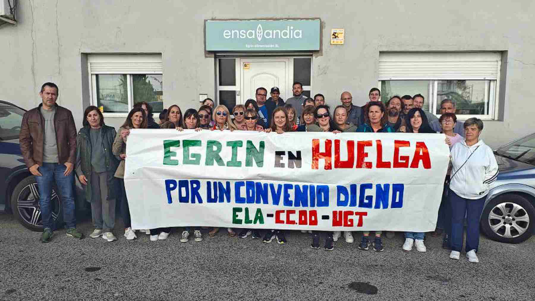 Egrin Alimentación, dedicada a la fabricación de ensaladillas y platos preparados, cuenta con 55 trabajadores y trabajadoras. Su representación sindical está compuesta por tres delegados de ELA, uno de CCOO y otro de UGT.