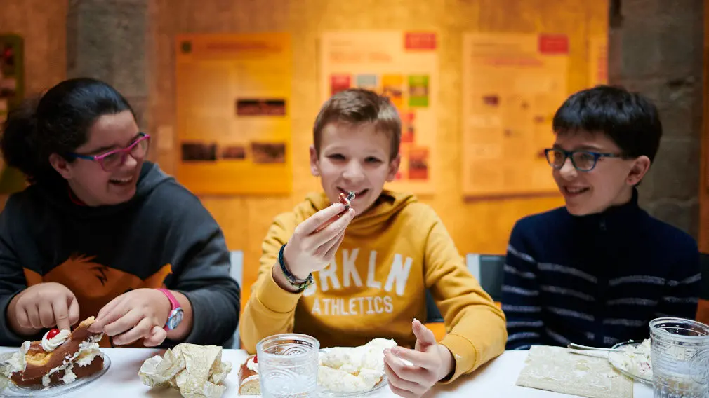 Este sábado, el encargado de cortar el pastel ha sido el alcalde de Pamplona, Enrique Maya, que ha acompañado a los miembros de la peña y a los niños que se iban a disputar por sorteo ser rey de Navarra por un día.