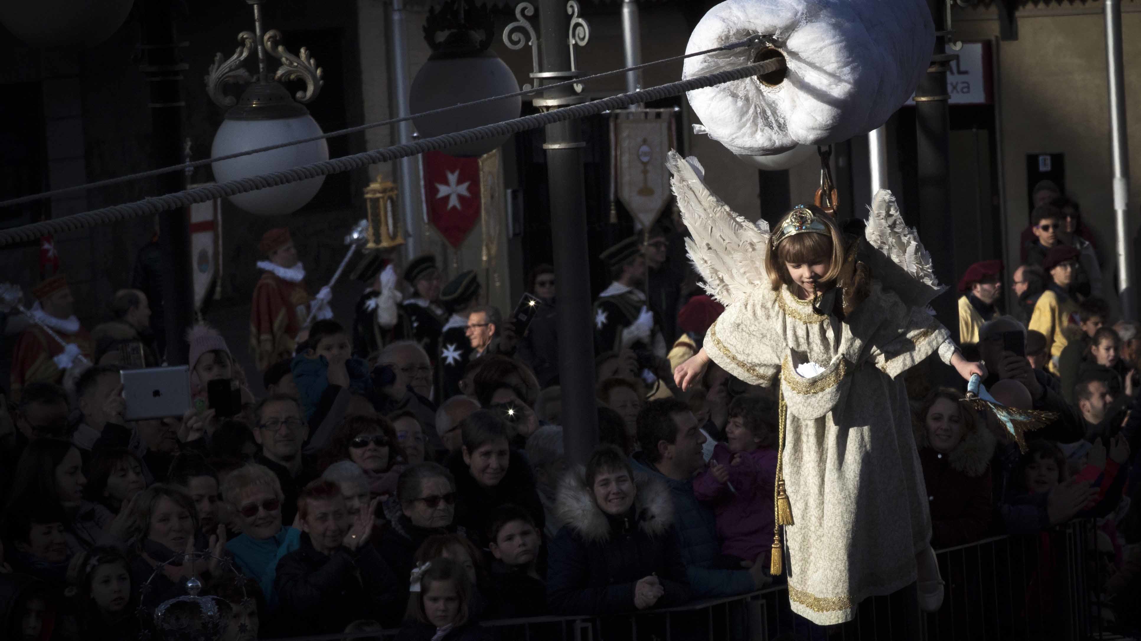 La niña, de 8 años, ha sido la protagonista en la mañana de este domingo, al encarnar al Ángel que anuncia a María la resurrección de Jesús en el acto culmen de la Semana Santa en Tudela, declarado Fiesta de Interés Turístico Nacional.