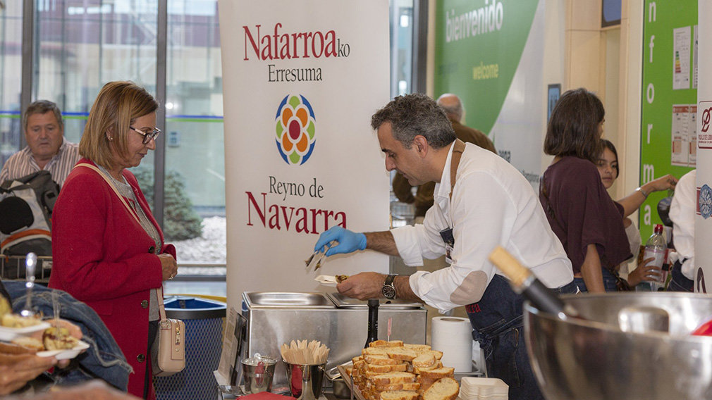 Degustación de productos navarros para los primeros pasajeros procedentes de Canarias. GOBIERNO DE NAVARRA