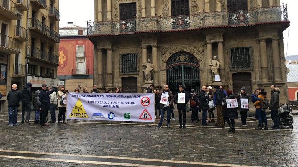 La Asociación de Afectados de Navarra por Campos Electromagnéticos, Ekologistak Martxan, Iniciativa Ciudadana Europea Atención 5G y Electro y Químicos Sensibles por el Derecho a la Salud se han manifestado este sábado en la plaza del Ayuntamiento de Pamplona en contra el despliegue de la tecnología 5G.