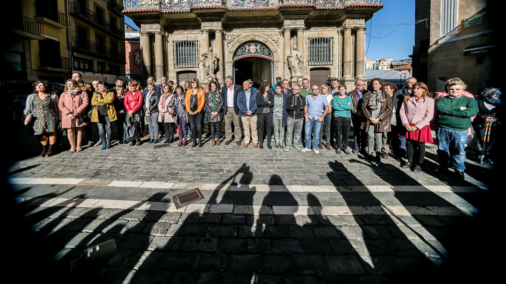 En la cocnentración se han dado cita la Corporación municipal, encabezada por el alcalde, Joseba Asirón, el Gobierno de Navarra, con la presencia de las consejeras Ana Ollo, Isabel Elizalde y Ana Herrera, y del Parlamento Foral, con la asistencia de su presidenta, Ainhoa Aznárez, junto con miembros de diferentes grupos. El Parlamento guardará además este jueves un minuto de silencio antes del pleno.