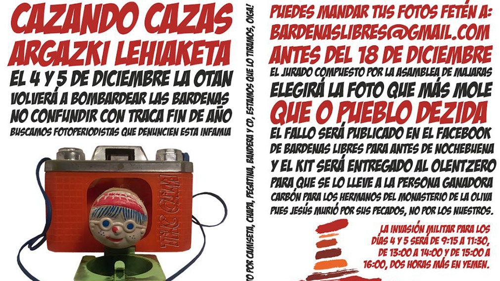 La plataforma Bardenas Libres 2018 ha organizado el original concurso fotográfico 'Cazando cazas' en protesta por la realización de nuevas maniobras con fuego real, los próximos 4 y 5 de diciembre, en el polígono de tiro de las Bardenas.