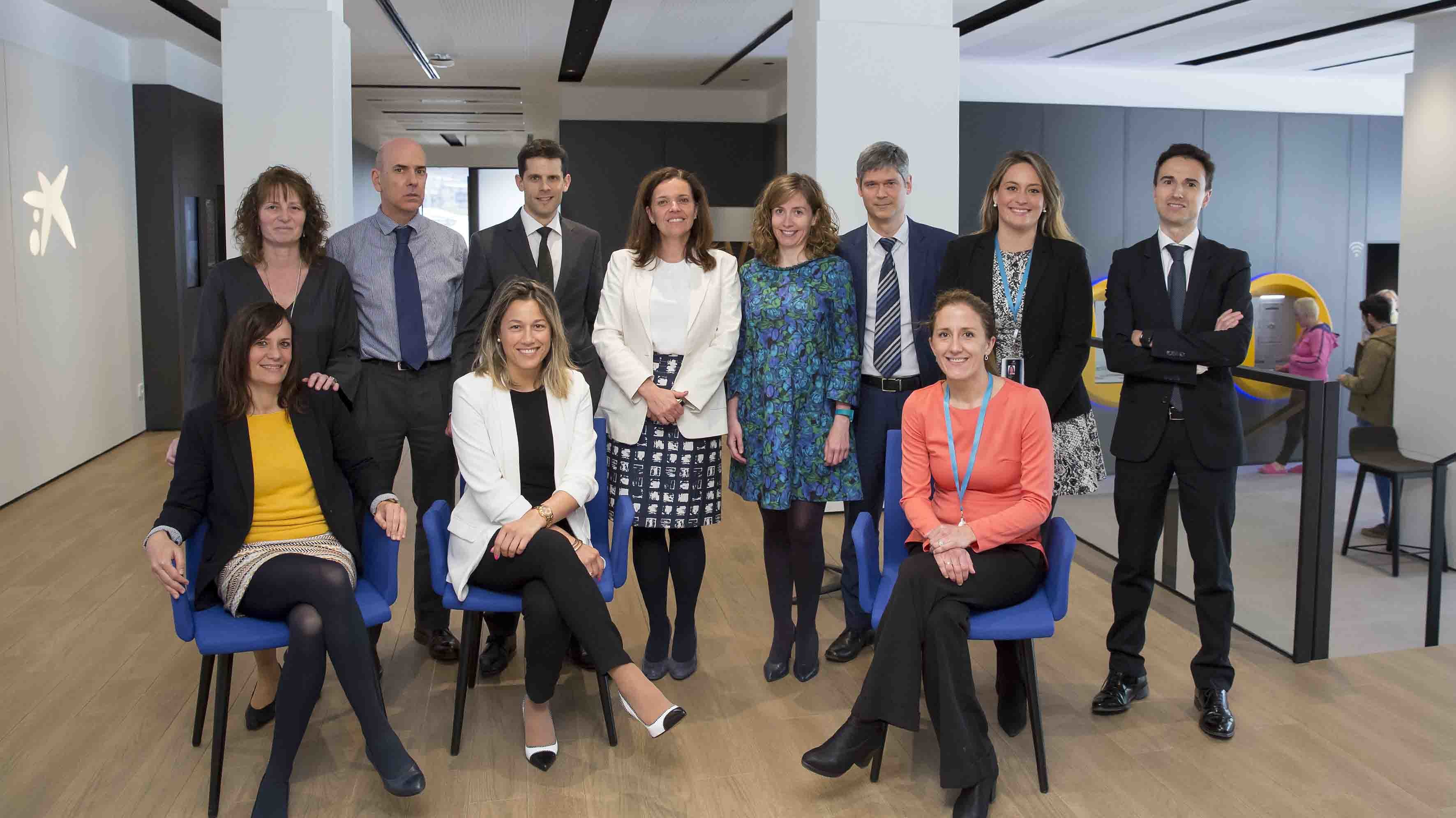 El equipo de la nueva oficina de CaixaBank en Marcelo Celayeta.
