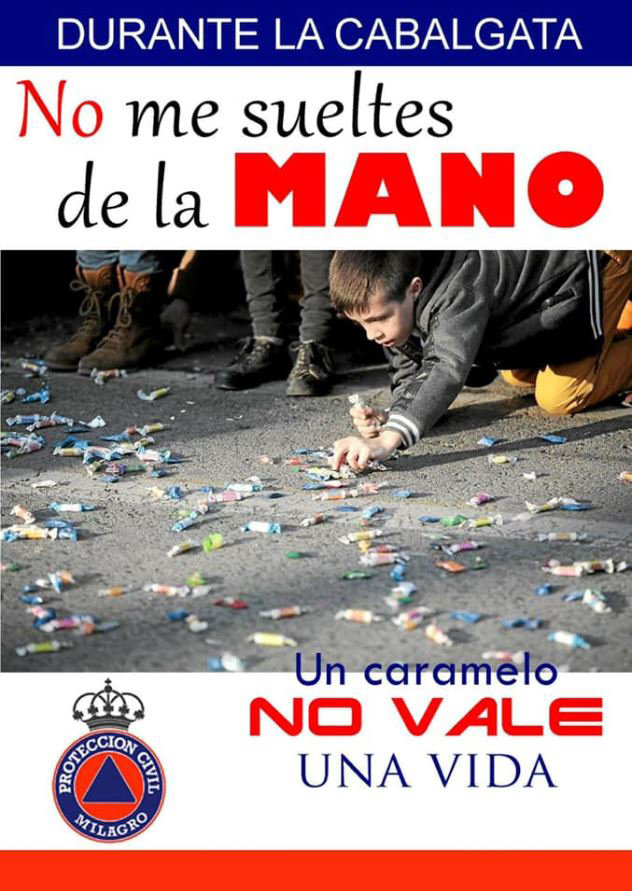 Un cartel realizado en Milagro por miembros de Protección Civil ha servido para que muchas cabalgatas de España recuerden la importancia de tener controlados a los más pequeños, con el objetivo de que no ocurran accidentes.
